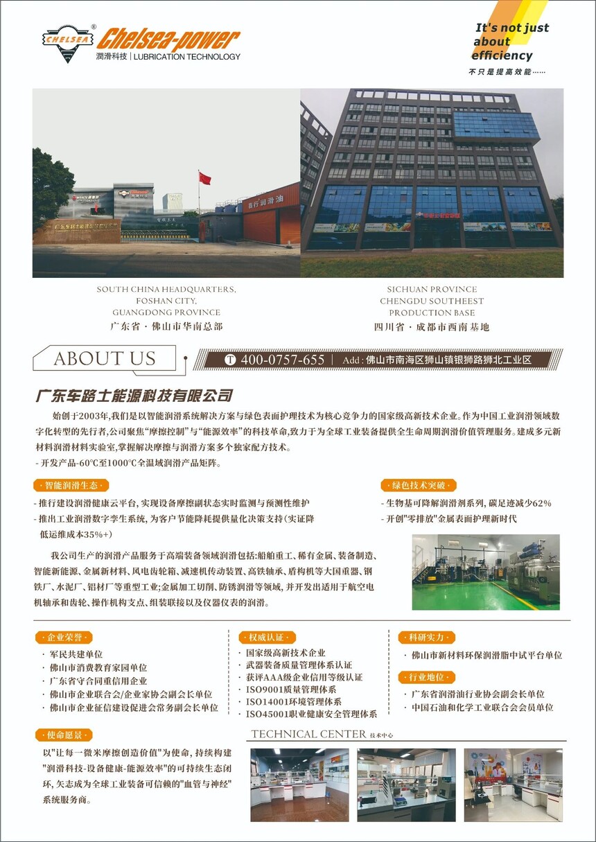 作为深耕润滑科技与洁护科技领域二十余年的标杆企业,车路士自2003年创立以来锚定创新驱动战略,现已成长为润滑油及清洁护理行业的核心生产服务商。企业不仅在广东、成都、天津、上海等地构建起辐射全国的一体化运营网络,更凭借持续迭代的核心技术,让产品覆盖汽车生产配套、运输设备制造、发电、矿山等多元工业场景,以优异的节能降耗性能赢得市场认可,为区域产业升级与产业链供应链稳定注入坚实力量。值得关注的是,车路士作为国家高新技术企业,近年持续发力技术创新,先后斩获工业润滑脂高效研磨过滤装置等多项专利,其智能化生产与绿色产品研发实力,与南海区发展新质生产力的政策导向高度契合。
